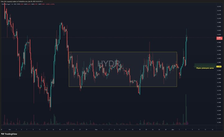 Цена упала более чем на 35% с начала 2025 года. Но в октябре падение остановилось и сформировался мощный боковик в ценовом диапазоне 0,4 - 0,37.