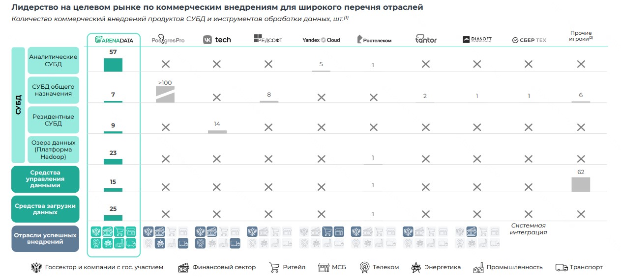 В целом у Аренадаты сохраняется огромный потенциал на рынке. Аналитические СУБД, основной продукт группы, являются самым быстрорастущим сегментом рынка.
