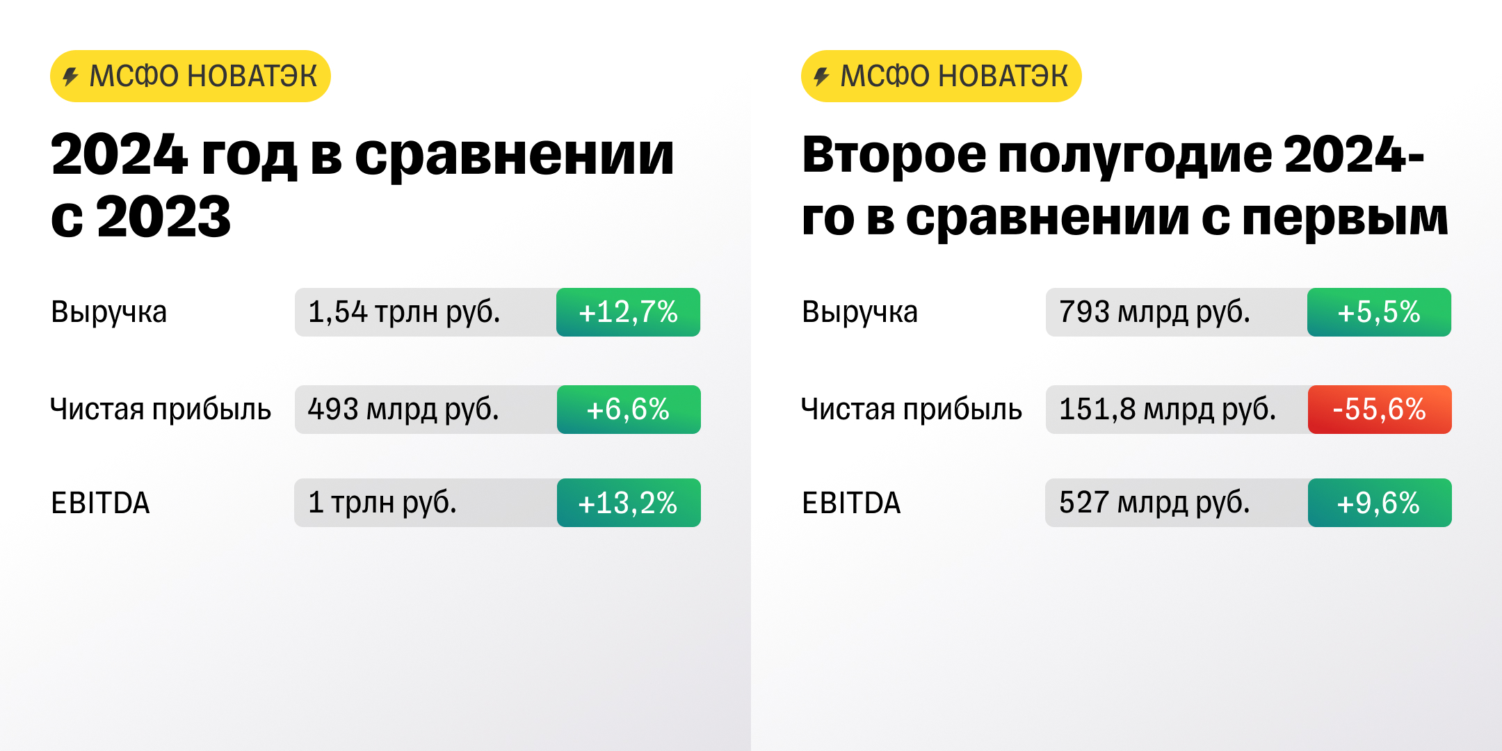 Чистая прибыль НОВАТЭКа во втором полугодии оказалась хуже ожиданий. Все из-за негативного эффекта от курсовых разниц на фоне ослабления рубля почти на 19%. По итогам 2024 года чистая прибыль, скорректированная на курсовые разницы, составила 553,4 млрд рублей, что на 4,6% выше значений 2023 года.