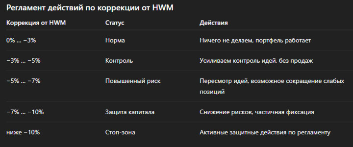 Текущая коррекция от HWM составляет −4,5% (данные по личному портфелю, подключённому к стратегии).