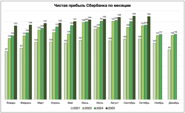 ✔️ Чистая прибыль за октябрь = 149,6 млрд руб. (в октябре 2024 = 134,2 млрд руб.)