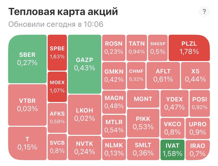 • Объёмы торгов упали до 36 млрд ₽ (–39% к вчерашнему дню).