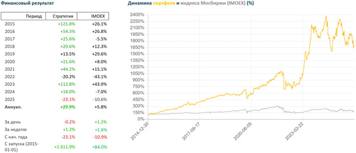 ➜ Портфель на неделе вырос на 1.2%, против индекса Мосбиржи +1.6%