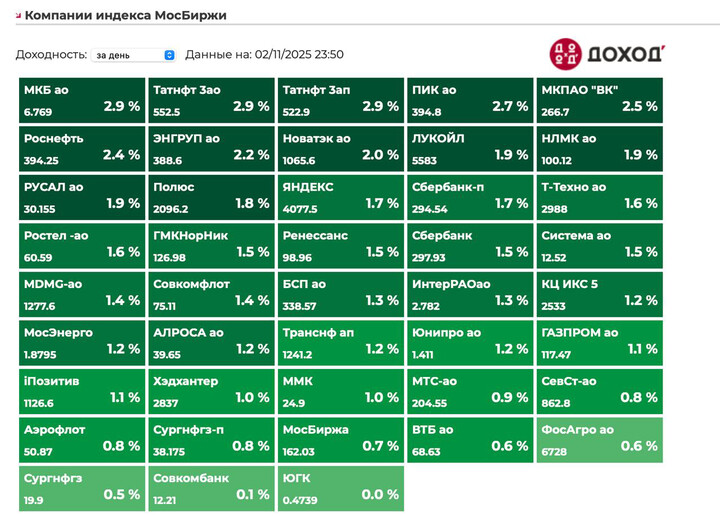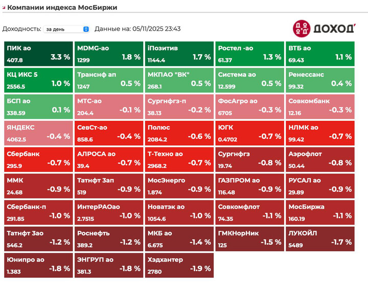 В среду индекс мосбиржи упал на 0,75% до 2551 пункта.