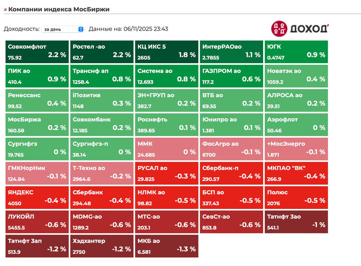 Индекс мосбиржи провел в боковике и закрылся на 2542 пунктах.